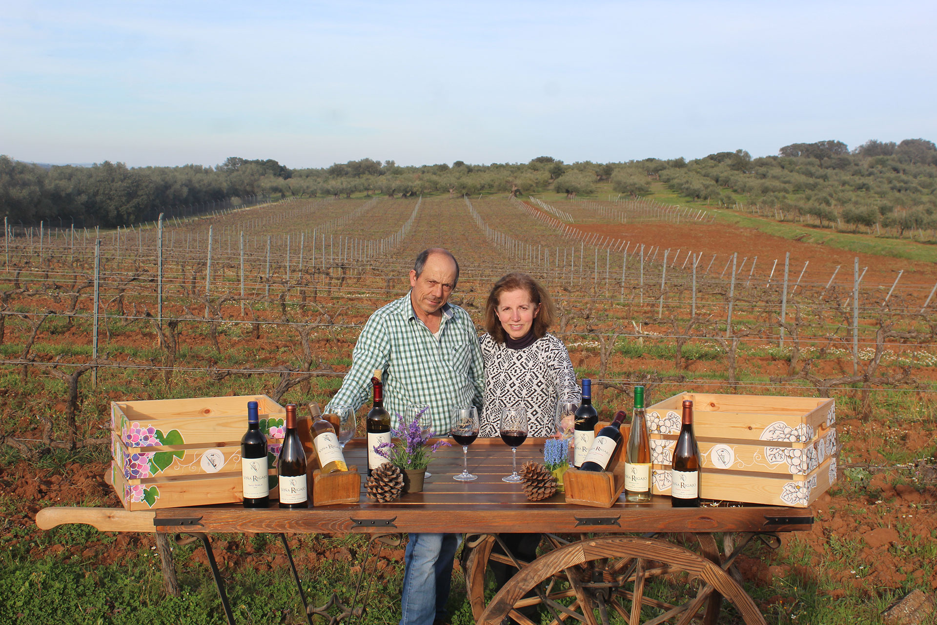 Manuel Regajo, guiado por las ideas de su hijo José Regajo, comienza la plantación de vides en la Viña del Mellizo, panadero del pueblo, alentados por la oportunidad del momento y sirviéndose de burras para llevar la uva desde el paraje de Las Cabezas hasta la Calle Compás de Fregenal de la Sierra, donde permanecía la bodega en sus inicios con las primeras tinajas de barro.