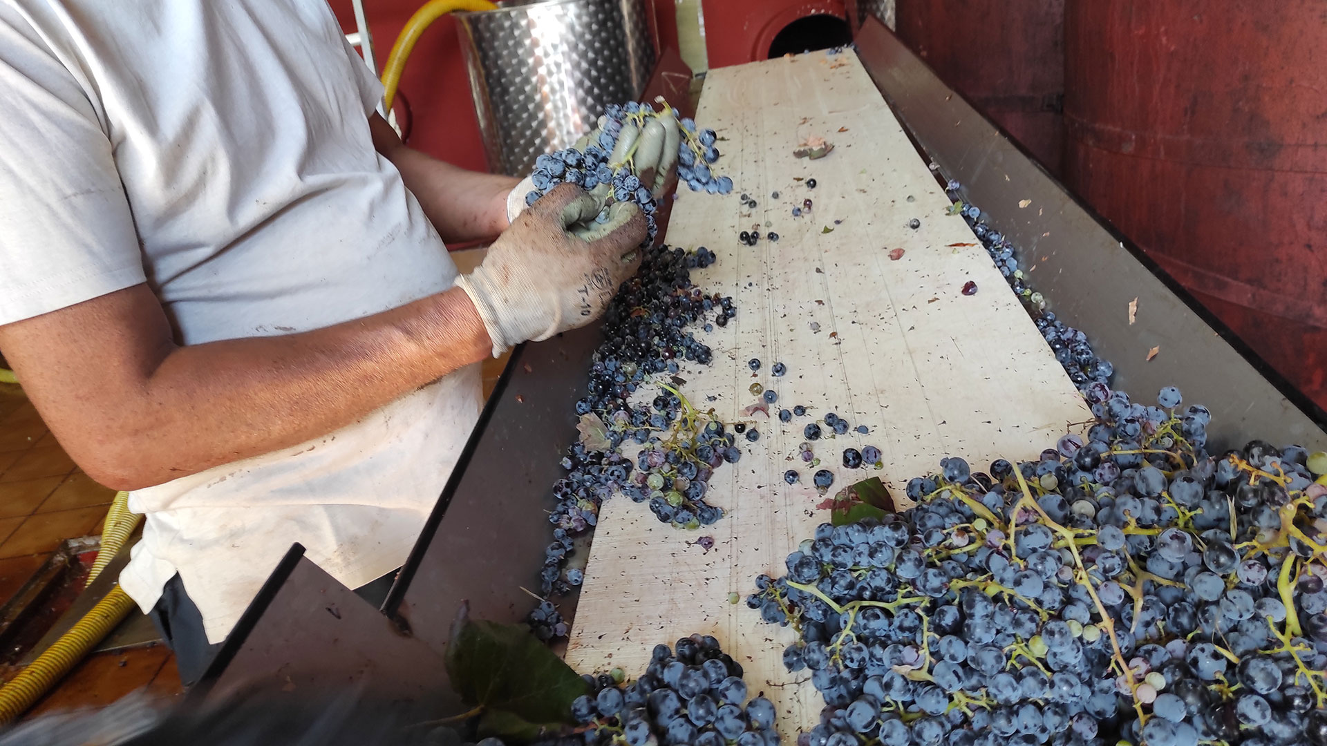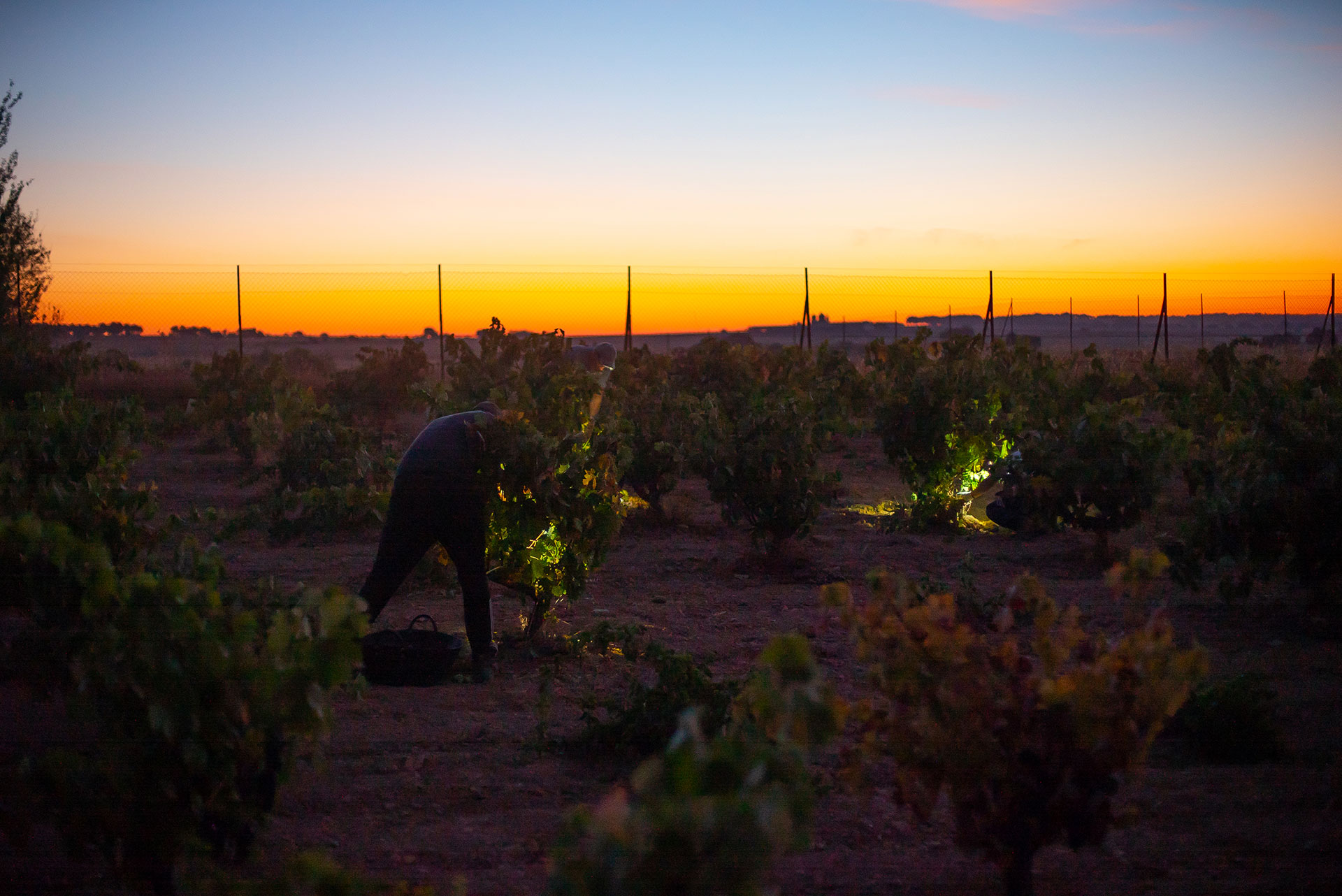 El fruto recolectado llega a la bodega en dos o tres turnos a lo largo de las mañanas de días del mes de septiembre, unos años a principios y otros a finales, con excepciones en el mes de agosto, en función de la maduración de la uva. La selección es esencial, tanto en el campo, como en la bodega, con la mesa de selección y el despalillado previo al prensado, para obtener el vino que procuramos con pasión.